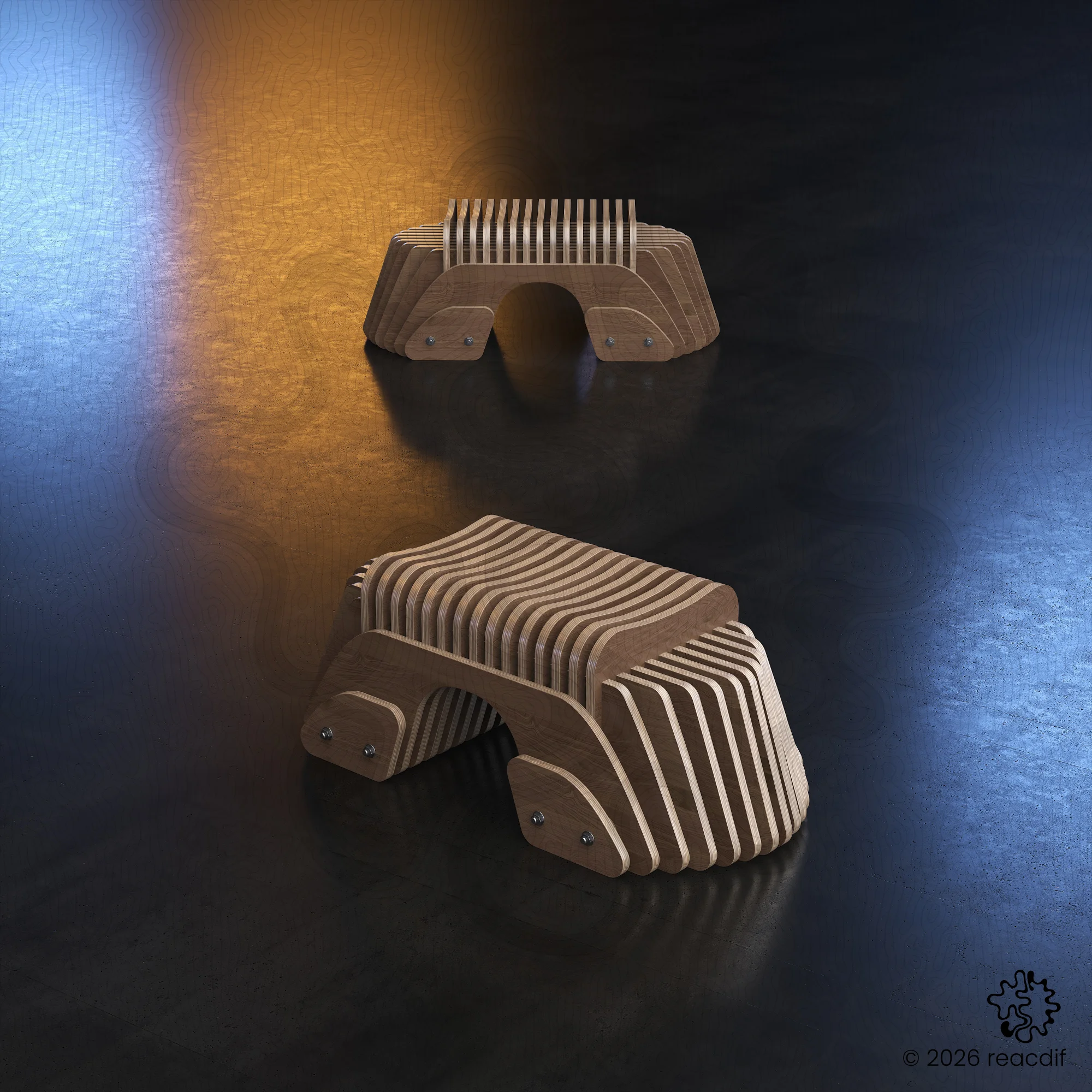 Parametric Bench A-6 | Organic Plywood CNC Design File | Digital Furniture Plan