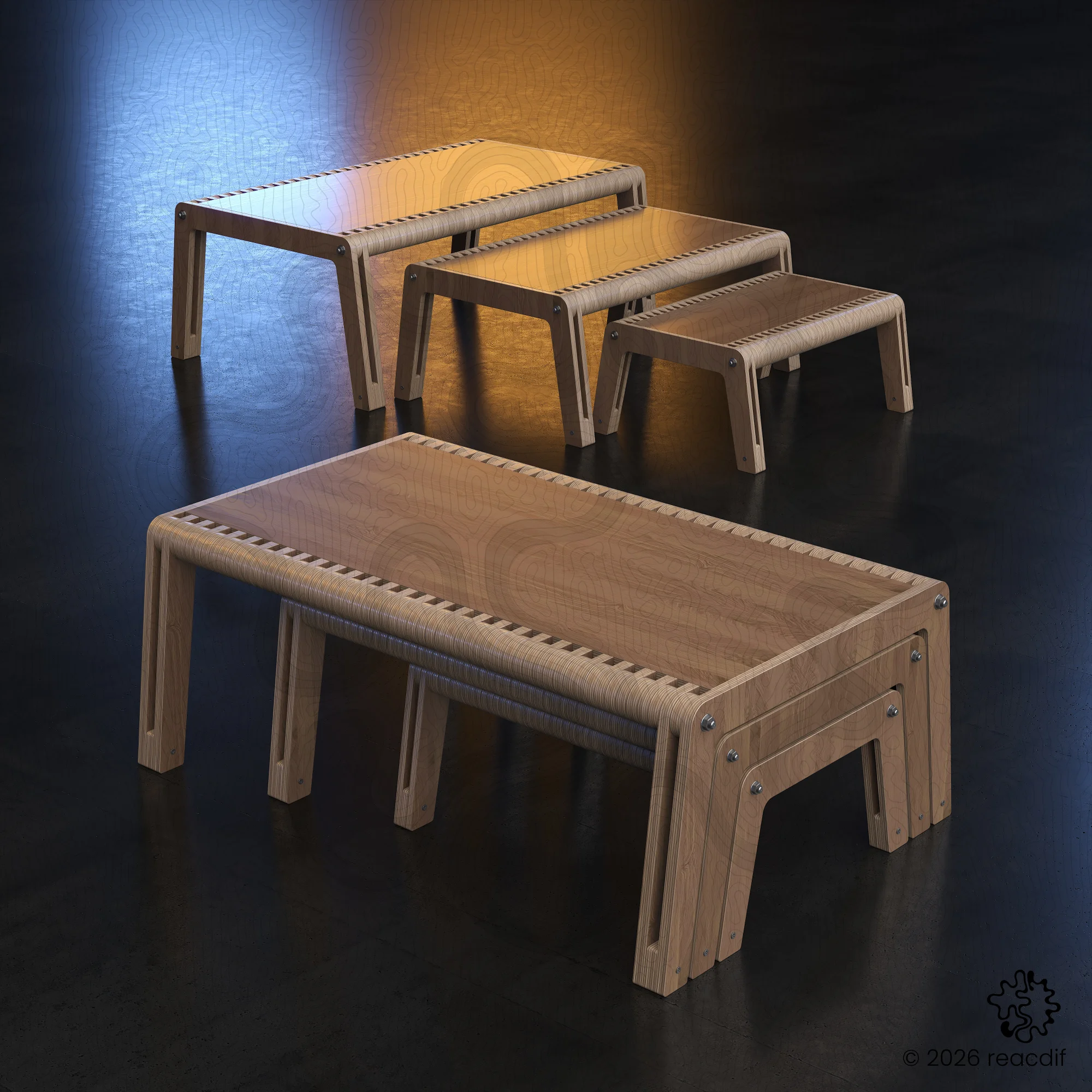 Professional parametric coffee table design files for CNC cutting. Central living room piece with generous surface area. Features clean design and optional lower shelf for magazines or decor. Perfect for indoor and outdoor use. Bundle of all variants included (MM, INCH, Small, Medium, Large, etc). Includes DXF, DWG, SVG, and PDF cutting files in both metric and inch units. Assembly instructions available in 8 languages (downloadable below). Instant digital download.