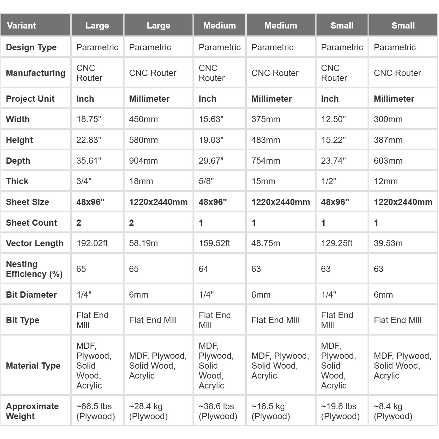 You don't need to own a machine! You can take the provided files (DXF, DWG, SVG, or PDF) to a local CNC cutting service or a local "maker space." Important: We sell digital design files only. We do not manufacture or ship physical furniture.