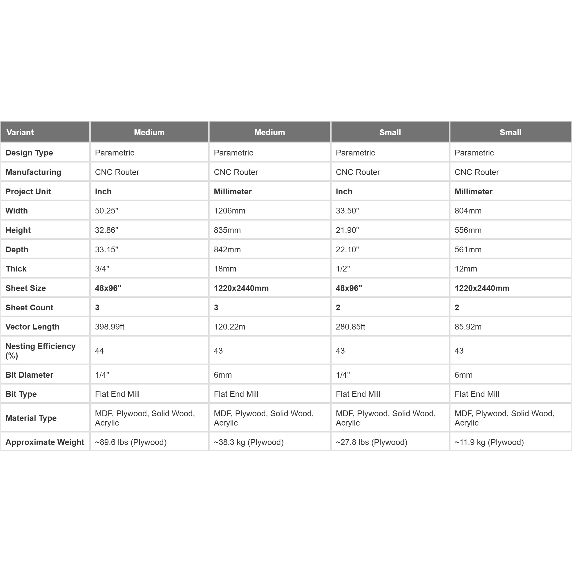 You don't need to own a machine! You can take the provided files (DXF, DWG, SVG, or PDF) to a local CNC cutting service or a local "maker space." Important: We sell digital design files only. We do not manufacture or ship physical furniture.