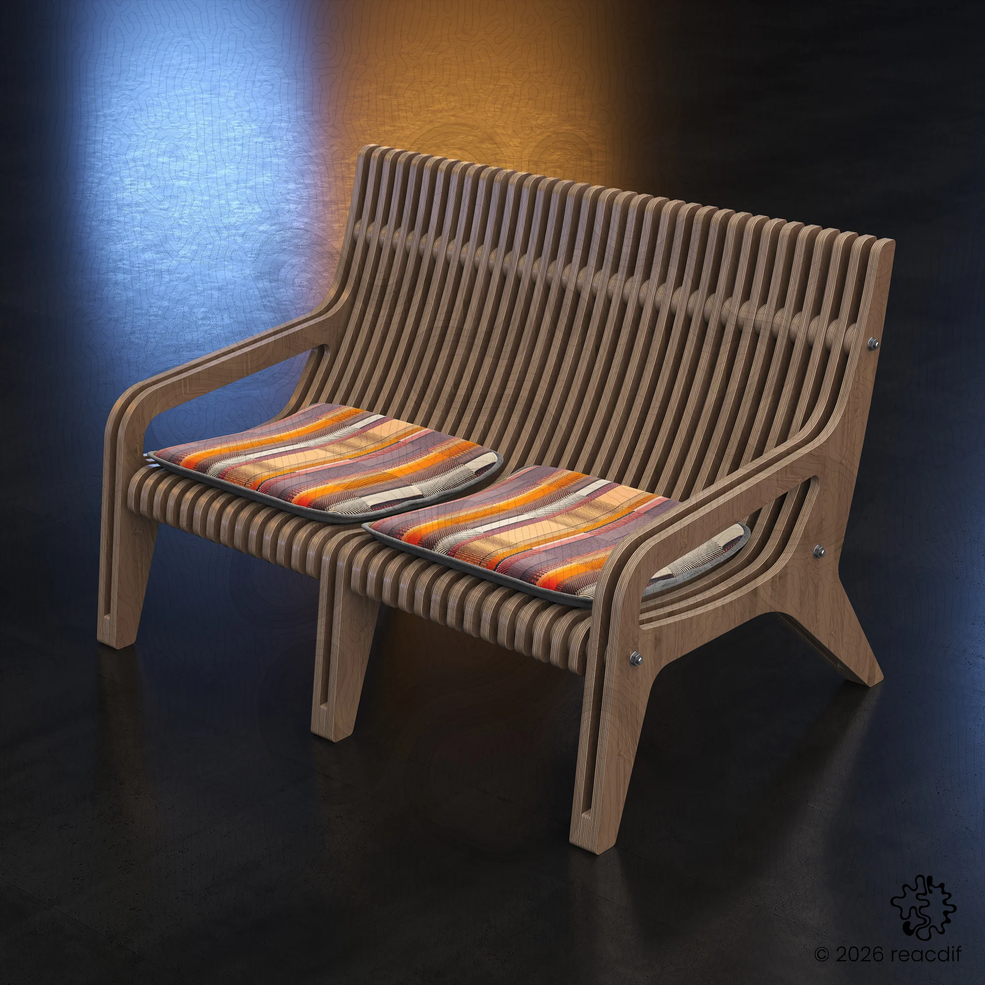 Parametric Sofa A-1 | Organic Plywood CNC Design File | Digital Furniture Plan