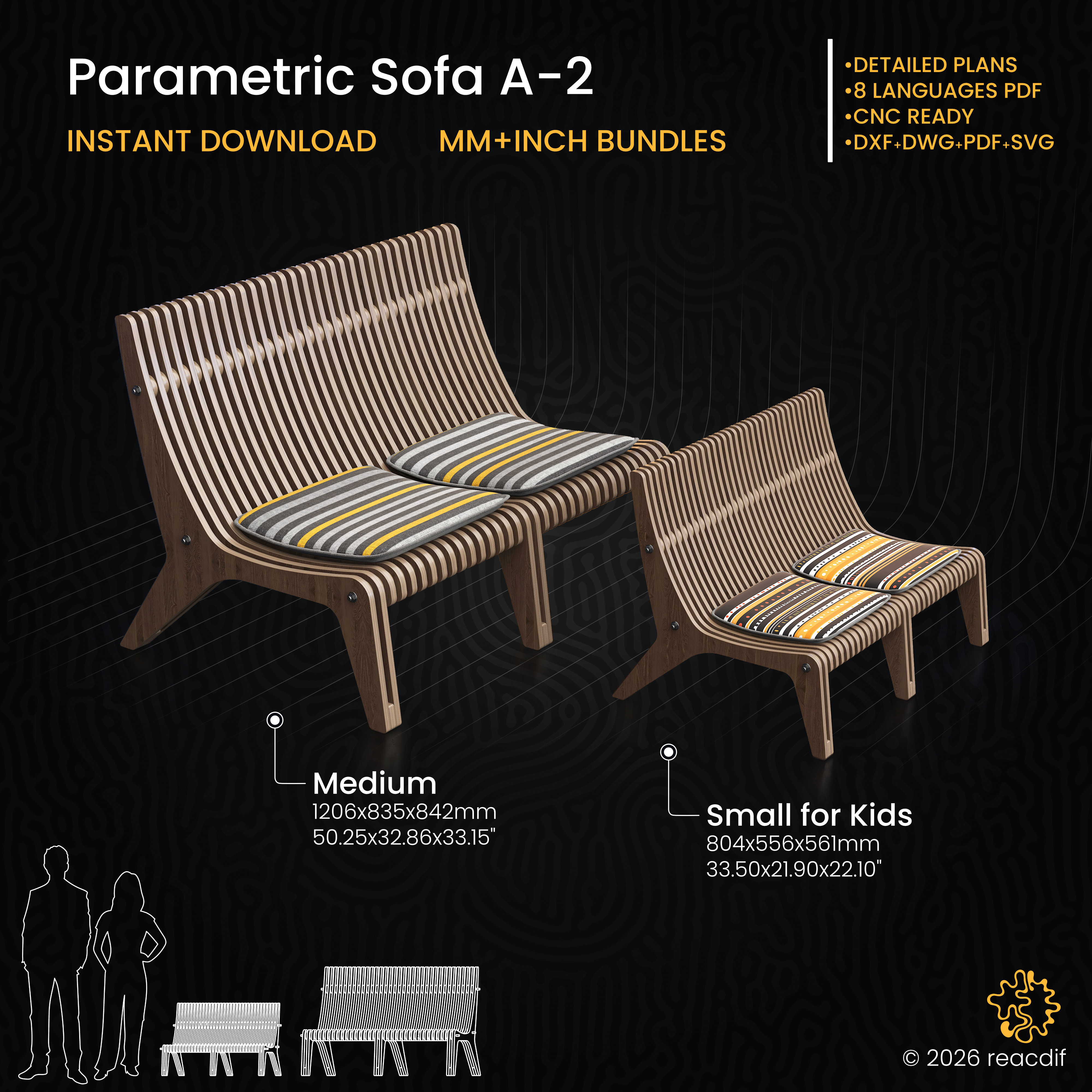 Parametric Sofa A-2 | MDF Sofa Design File for CNC | Digital Furniture Plan