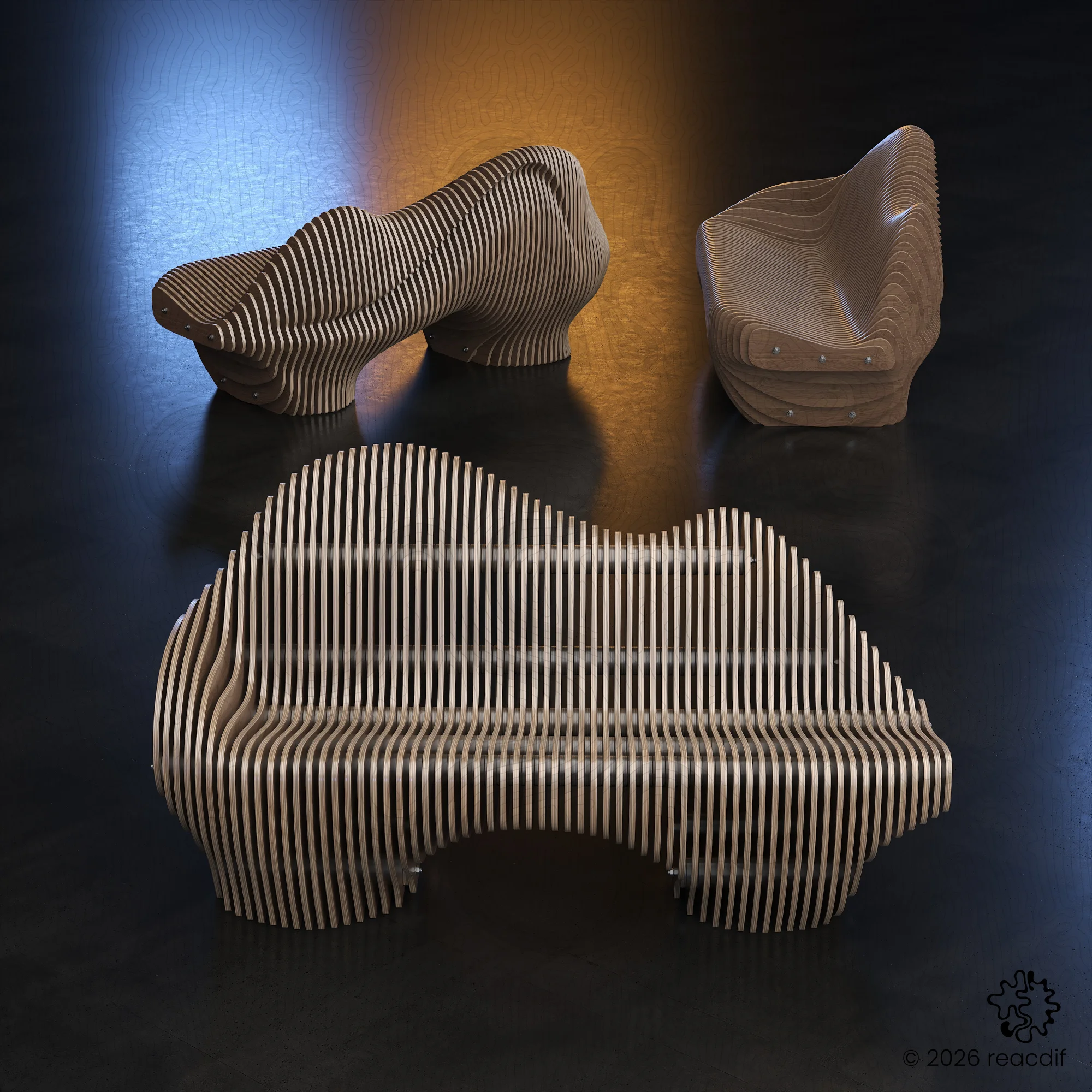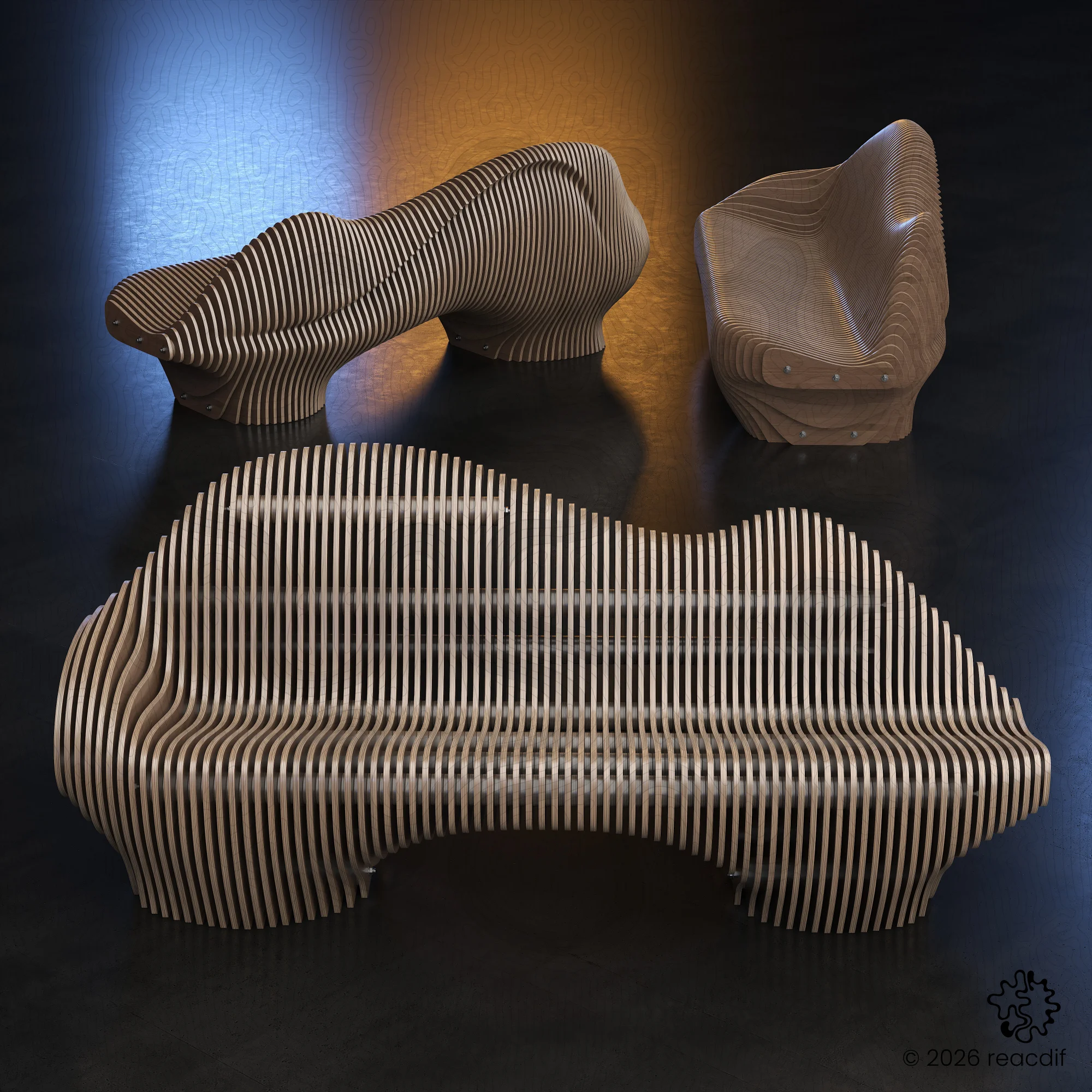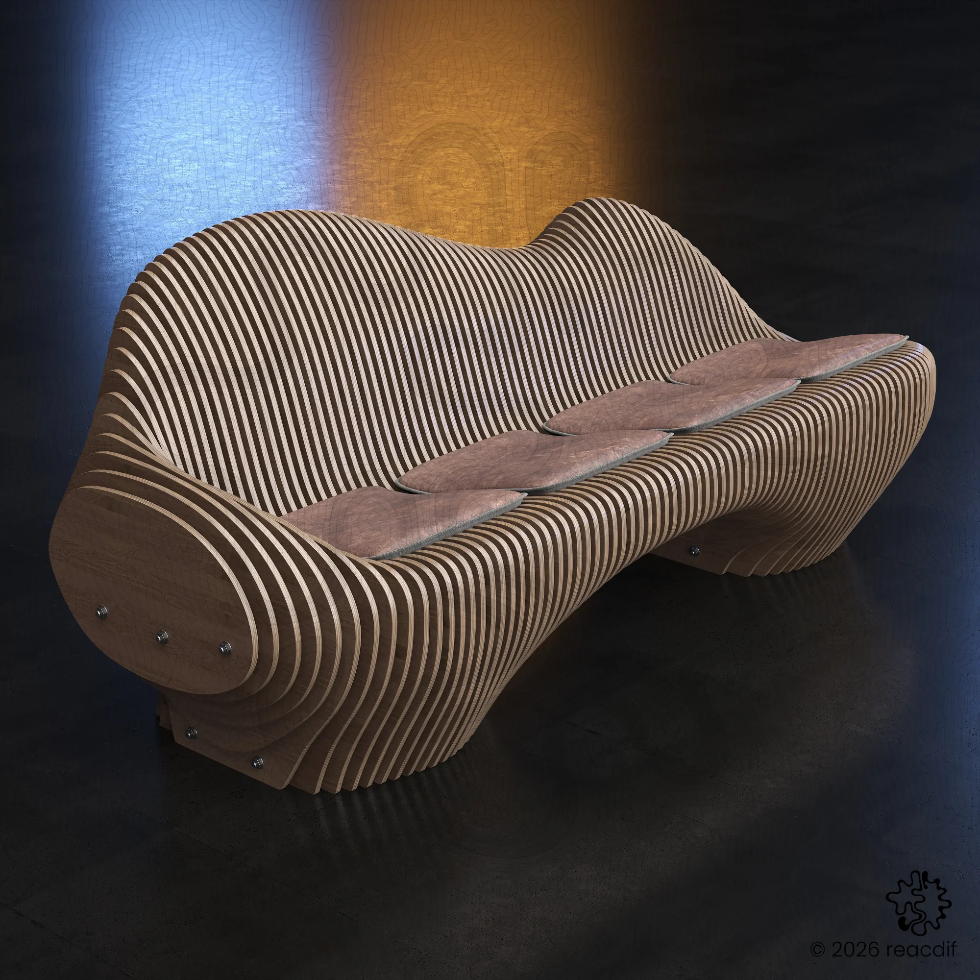 Parametric Sofa A-3 | Wavy Wooden MDF Sofa Design File for CNC