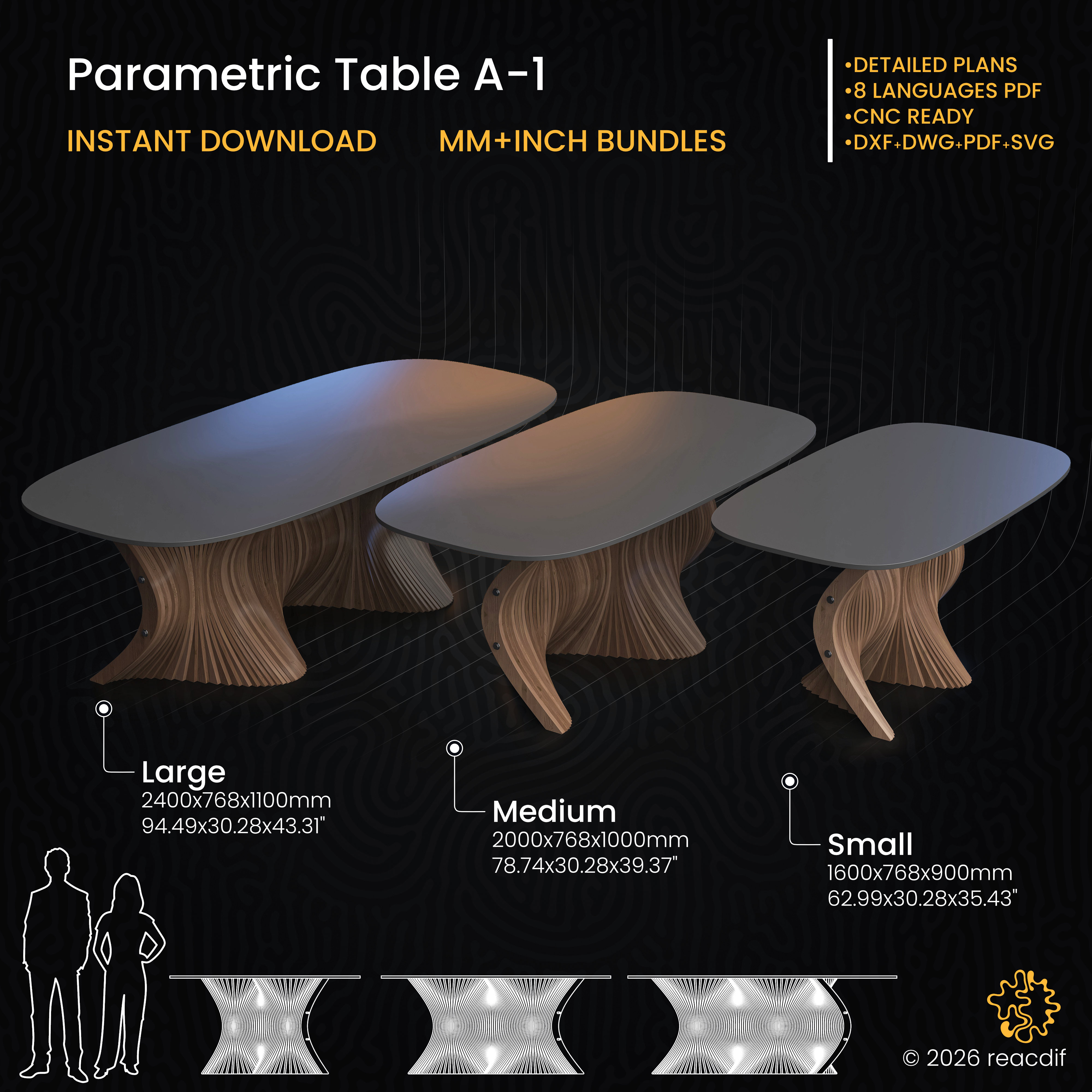 Parametric Table A-1 | Wavy Dining Table CNC Design File | Digital Furniture Plan