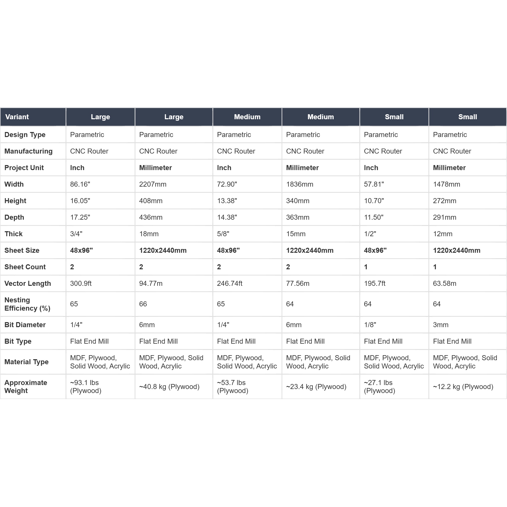 Home N PeopleProfessional parametric wall shelves design files for CNC cutting. Wall-mounted storage saving floor space. Perfect for small apartments, displaying decor, or organizing essentials vertically. Perfect for indoor and outdoor use. Bundle of all variants included (MM, INCH, Small, Medium, Large, etc). Includes DXF, DWG, SVG, and PDF cutting files in both metric and inch units. Assembly instructions available in 8 languages (downloadable below). Instant digital download.