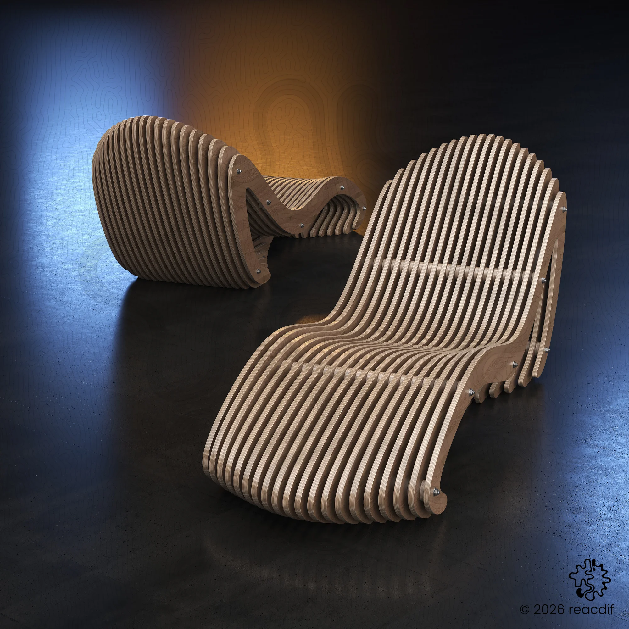 Professional parametric chaise lounge design files for CNC cutting. Luxury relaxation piece with ergonomic reclining support. Perfect for patios, poolside, or contemporary interiors seeking statement furniture. Perfect for indoor and outdoor use. Bundle of all variants included (MM, INCH, Small, Medium, Large, etc). Includes DXF, DWG, SVG, and PDF cutting files in both metric and inch units. Assembly instructions available in 8 languages (downloadable below). Instant digital download.