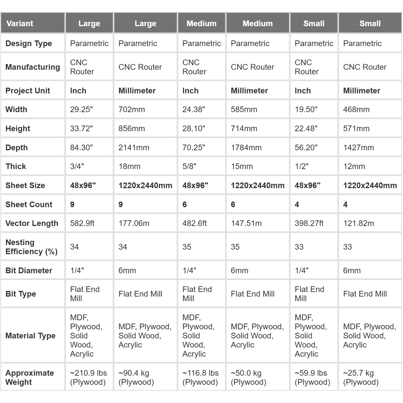 You don't need to own a machine! You can take the provided files (DXF, DWG, SVG, or PDF) to a local CNC cutting service or a local "maker space." Important: We sell digital design files only. We do not manufacture or ship physical furniture.